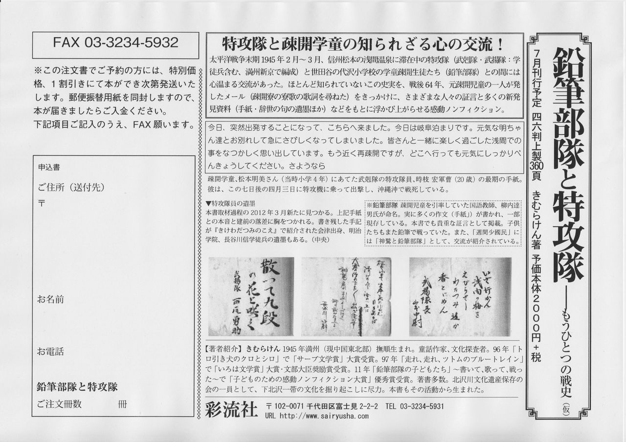 ¢¥¡ÖËÌÂôÀîʸ²½°ä»ºÊݸ¤Î²ñ¡×¤Î³èư¤Î°ìü¤«¤é·¡¤êµ¯¤³¤µ¤ì¤¿ÏäϤ褦¤ä¤Ã¤È½ÐÈDz½¤µ¤ìÆü¤ÎÌܤò¸«¤Þ¤¹¡£²ñ¤Îȯ²áÄø¤â¥É¥é¥Þ¤È¤·¤ÆÉÁ¤«¤ì¤Æ¤¤¤Þ¤¹¡£¡Ö±ôÉ®ÉôÂâ¤ÈÆÃ¹¶Â⡽¤â¤¦¤Ò¤È¤Ä¤ÎÀï»Ë¡×¡ÊºÌή¼Ò¡Ë£²£°£°£°±ß¡ÜÀǤϰì³ä°ú¤Ç¤ÎͽÌó¤ò»ö̳¶É¤Î¼Ù½¡Ìç¤Ç¤â¹Ô¤Ã¤Æ¤¤¤Þ¤¹¡£¥Í¥Ã¥È¤Ç¤Ï¥¢¥Þ¥¾¥ó¤Ê¤É¤Ç´û¤ËͽÌó¤ò¼õ¤±ÉÕ¤±¤Æ¤¤¤Þ¤¹¡££··î£²£µÆüȯÇä¡£¤³¤Î²ñÊó¤Î²¼¤Ë¥¢¥Ã¥×¤·¤¿¼Ì¿¿¤ò°õºþ¤·¤ÆFAXÃíʸ¤â¤Ç¤¤Þ¤¹¡£