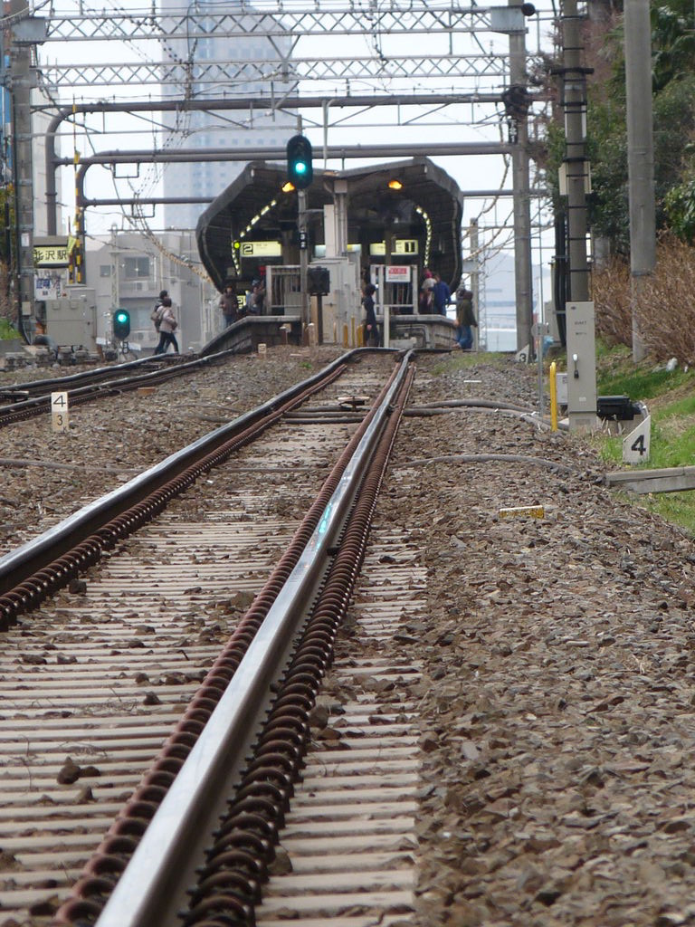 ¡¡ÀþÏ©¤ÎÎ¾ÏÆ¤Î²È¡¹¤ÎÅô¤Ï¤Û¤È¤ó¤É¾Ã¤¨¤Æ¤¤¤ë¡£Æ§ÀڤˤÀ¤±½ªÌë¤Î·Ö¸÷Åô¤¬¤Ä¤¤¤Æ¤¤¤ë¡£¤½¤ÎÌÀ¤«¤ê¤Ë¥ì¡¼¥ë¤Î¾åÌ̤À¤±¤¬¶ä¿§¤Ë¸÷¤Ã¤Æ¤¤¤ë¡£Àè¤ÎÊý¤Î²¼ËÌÂô±Ø¤Î¥Û¡¼¥à¤âÈ¿ÂЦ¤Î¿·ÂåÅĤΥۡ¼¥à¤âÅô¤Ï¾Ã¤¨¤Æ¤¤¤ë¡£Åż֤ÎÄ̤é¤Ê¤¤¾®¤µ¤ÊƧÀڤο¿¤óÃæ¤ËΩ¤Ã¤Æ¡¢É¬¤º¤Î¤è¤¦¤Ë¤½¤Î¿¿¤Ãľ¤°¤Ê¥ì¡¼¥ë¤ò»ä¤Ïį¤á¤Æ¤¤¤ë¡£