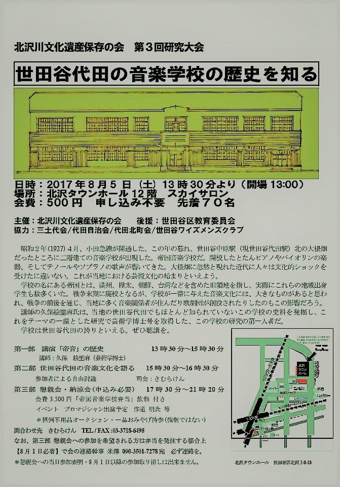 研究会テーマ 世田谷代田の音楽学校の歴史を知る