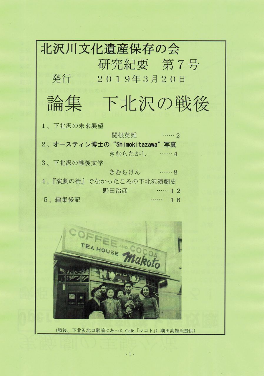 ¡Ê°ì¡ËËÌÂôÀîʸ²½°ä»ºÊݸ¤Î²ñ¤ÏËèǯµªÍפòȯ¹Ô¤·¤Æ¤¤¿¡£º£Ç¯ÅÙ¤ÏÂ裷¹æ¤Ç¤¢¤ë¡£¥¿¥¤¥È¥ë¤Ï¡ÖÏÀ½¸¡¡²¼ËÌÂô¤ÎÀï¸å¡×¤À¡¢ºòǯ²Æ¡¢Â裴²ó¸¦µæÂç²ñ¤ò³«¤¤¤¿¤¬¡¢¤³¤Î¤È¤¤Ëȯɽ¤µ¤ì¤¿¤â¤Î¤òµªÍפȤ·¤Æ¤Þ¤È¤á¤¿¡£È¯É½¼Ô¤Î°ì¿Í¡¢¤¤à¤é¤¿¤«¤·»á¤Ï¡¢¡Ö¥ª¡¼¥¹¥Æ¥£¥óÇî»Î¤Î¡ÉShimokitazawa"¼Ì¿¿¡×¤ò¤³¤ÎÏÀ¹Í¤ËºÜ¤»¤Æ¤¤¤ë¡£¤³¤ÎÂç²ñ¤Ç¡Ö²¼ËÌÂô¤ÎÀï¸å¡×¤ò¥Æ¡¼¥Þ¤È¤·¤¿¤Î¤Ï¤ä¤Ï¤ê¥ª¡¼¥¹¥Æ¥óÇî»Î¤Î¼Ì¿¿¤Î±Æ¶Á¤¬Â礤¤¡£Àï¸å¤Î²¼ËÌÂô¤ÎĮʤߤòÁ¯¤ä¤«¤Ë¼Ì¤·»£¤Ã¤¿¤â¤Î¤À¡£Á¯ÌÀ¤Ê¥«¥é¡¼²èÁü¤«¤é¤Ï»þÂå¤Î¶õµ¤´¶¤Þ¤Ç¤âɺ¤Ã¤Æ¤¯¤ë¡£Ç븶ºóÂÀϺ¤¬¤Õ¤é¤Õ¤é¤ÈÊ⤤¤Æ¤¤¤¿º¢¤Î²Èʤߤ¬¤½¤Ã¤¯¤ê»Ä¤Ã¤Æ¤¤¤¿¡£Ä®¤ÎÎò»Ëʸ²½¤ò¤¢¤Ö¤ê½Ð¤·¤¿ÆÀ¤¬¤¿¤¤¼Ì¿¿¤Ç¤¢¤ë¡£¤³¤ì¤Ë¥¹¥Ý¥Ã¥È¤òÅö¤Æ¤¿¤³¤È¤ÇÈë¤á¤é¤ì¤¿Àï¸å»Ë¤¬È¯·¡¤µ¤ì¤¿¡£ÌîÅļ£É§»á¤Î²¼ËÌÂô±é·àÁ°»Ë¤Ï¤½¤Î¹¥Îã¤À¡¢¤³¤Î¤³¤È¤Ë¿¨¤ì¤¿½é¤á¤Æ¤ÎÏÀ¹Í¤Ç¤¢¤ë¡£