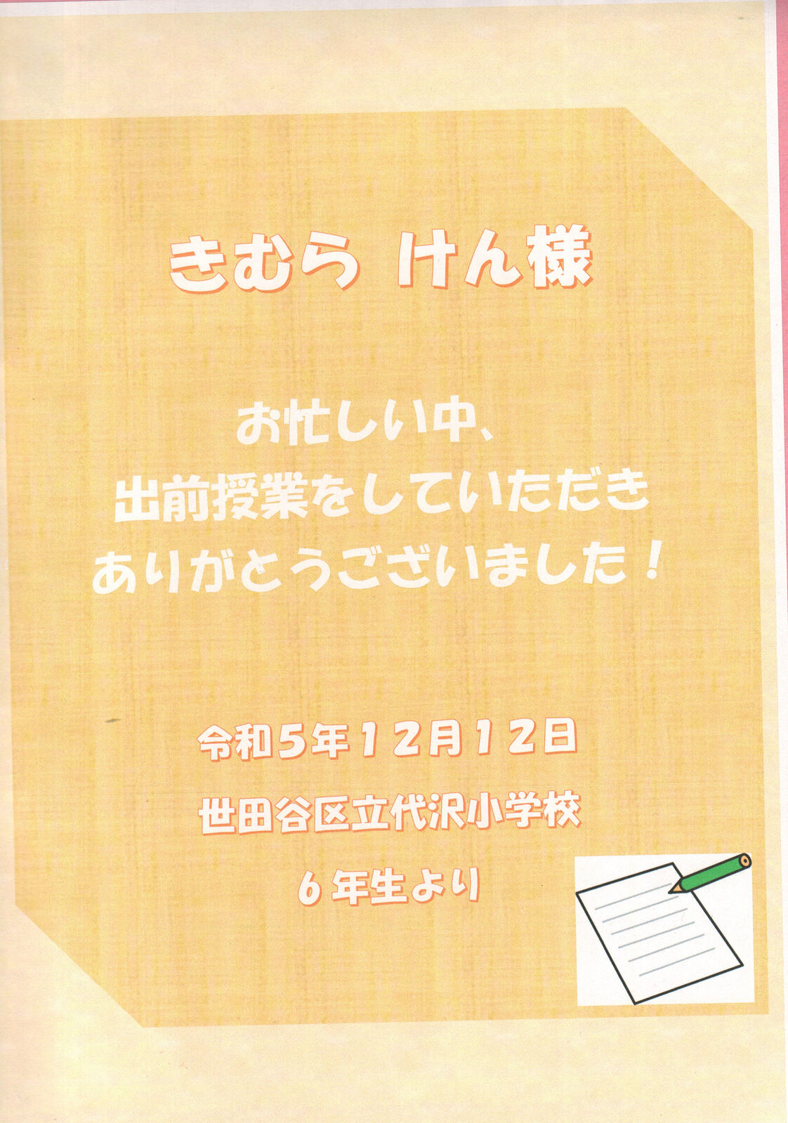 ¡¡º£²ó¤Ï¡£Ê¿Ï¤ä±ôÉ®ÉôÂâ¤Ê¤É¤Î¤ªÏäò¤¢¤ê¤¬¤È¤¦¤´¤¶¤¤¤Þ¤·¤¿¡£»ä¤Ï¤³¤ÎÏäòÄ̤·¤Æ²þ¤á¤Æ¿Æ¤äʿϤؤδ¶¼Õ¤ÎÂçÀÚ¤µ¤ò³Ø¤Ó¤Þ¤·¤¿¡£±ôÉ®ÉôÂâ¤Î»Ò¤É¤â¤¿¤Á¤Î¿Æ¤¬±Ø¤Þ¤ÇÁ÷¤Ã¤Æ¤¤¤Ã¤¿ÍͻҤ䡢½¸ÃÄÁ³«¤·¤Æ¤ë»þ¤Ë»Ò¶¡¤¿¤Á¤¬µã¤¤¤Æ¤·¤Þ¤Ã¤Æ¤¤¤ëÍͻҤ«¤é¿Æ¤ÎÂçÀÚ¤µ¤ò²þ¤á¤Æ´¶¤¸¤Þ¤·¤¿¡£¤µ¤é¤ËÆÃ¹¶Ââ¤Ê¤É¤¤¤í¤¤¤í¤Ê¿Í¡¹¤¬µ¾À·¤Ë¤Ê¤Ã¤Æ¤¤¤¿¤ê¤¹¤ë¤Î¤Çº£¤ÎʿϤ¬¤¢¤ê¡¢Ê¿Ï¤ÎÂçÀÚ¤µ¤ò³Ø¤Ó¤Þ¤·¤¿¡£¤½¤·¤ÆºÇ¶á¤Ï¥á¡¼¥ë¤äSNS¤Ê¤É¤¬¤¢¤ê¡¢¤½¤¦¤¤¤¦¤â¤Î¤Ç¤ä¤ê¤È¤ê¤ò¤¹¤ë¤³¤È¤¬Â¿¤¯¤Ê¤Ã¤Æ¤ë¤±¤É¡¢¤³¤Î¤ªÏäòÄ̤·¤Æ¼ê»æ¤ÎÎɤµ¤òÃΤ俤Τǡ¢¼ê»æ¤ò»È¤¦µ¡²ñ¤òÁý¤ä¤½¤¦¤È»×¤¤¤Þ¤·¤¿¡£±ôÉ®ÉôÂâ¤Î¸åÇڤȤ·¤Æ¼ê»æ¤ÎÎɤµ¤òÅÁ¤¨¤é¤ì¤¿¤é¤¤¤¤¤Ê¤È»×¤¤¤Þ¤¹¡£