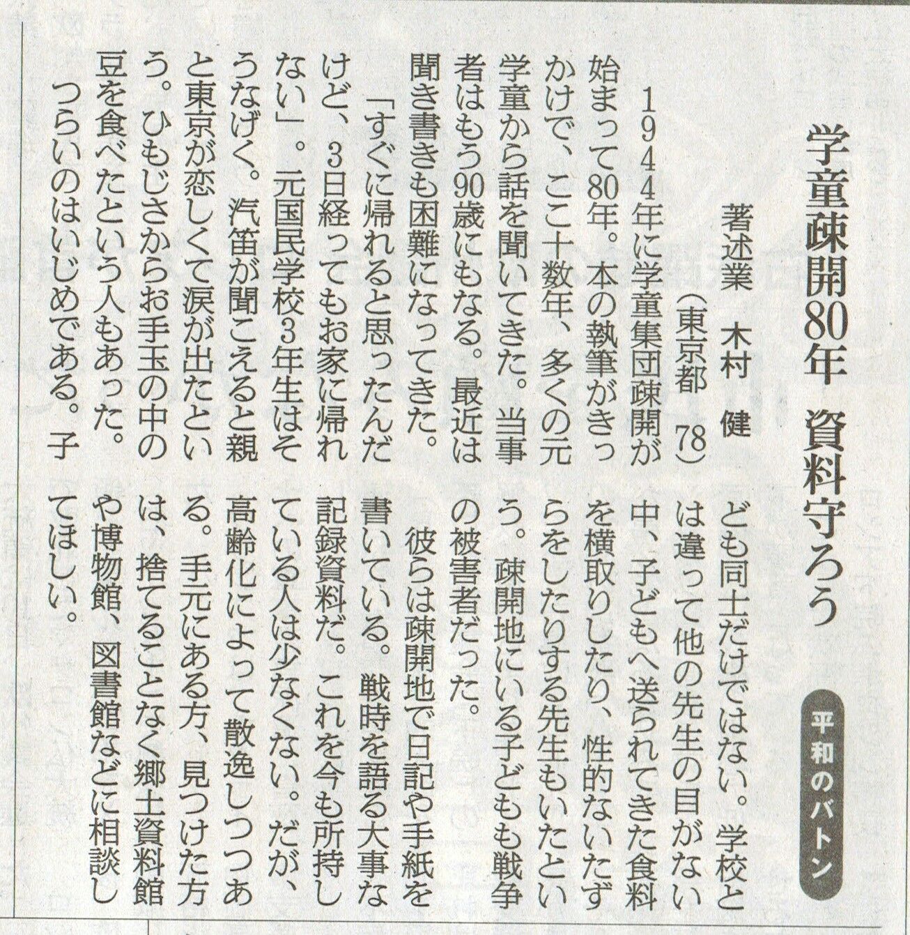 ¡Ê°ì¡Ë6·î12Æü¡¢Ä«Æü¿·Ê¹¡ÖÀ¼¡×Íó¤ËÅê¹Æ¤ò¤·¤¿¡£¡Ö³ØÆ¸Á³«80ǯ¡¡»ñÎÁ¤ò¼é¤í¤¦¡×ʿϤΥХȥ󡡤Ȥ·¤Æµ»ö¤¬·ÇºÜ¤µ¤ì¤¿¡£³ØÆ¸Á³«¤«¤é80ǯ¤¬·Ð²á¤·¤¿¡£Åö»þ£´Ç¯À¸¤À¤Ã¤¿¿Í¤Ï90ºÐ¤Ë¤Ê¤Ã¤Æ¤¤¤ë¡£Ê¹¤½ñ¤¤âº¤Æñ¤Ë¤Ê¤Ã¤ÆÍè¤Æ¤¤¤ë¡£²Ã¤¨¤Æ¤â¤¦°ì¤Ä¤Ï»ñÎÁ¤Î»¶°ï¤À¡¢Â¿¤¯¤Î¸µ³ØÆ¸¤¬Æüµ¤ä¼ê»æ¤ò»Ä¤·¤Æ¤¤¤ë¡£¤¬¡¢Åö»ö¼Ô¤Î¹âÎ𲽤ˤè¤ê¤³¤ì¤é¤¬¼Î¤Æ¤é¤ì¤¿¤ê¡¢¾ÆµÑ¤µ¤ì¤¿¤ê¤·¤Æ¤¤¤ë¡£¤³¤ì¤ÏÀï»þ»ñÎÁ¤È¤·¤Æ¤â½ÅÍפǤ¢¤ë¡£¤¤¤ï¤æ¤ë¸øÅª»ñÎÁ¤ÏÊÆ·³¤«¤éÀÕǤÄɵڤµ¤ì¤ë¶²¤ì¤¬¤¢¤ë¤È¤¤¤¦¤³¤È¤Ç¾ÆµÑ½èʬ¤µ¤ì¤¿¡£¤½¤ì¤Ç¿¤¯¤Î»ñÎÁ¤¬¼º¤ï¤ì¤¿¡£¤³¤ì¤òÊä´°¤·¤¿¤Î¤¬³ØÆ¸¤¬»Ä¤·¤¿µÏ¿¤À¡£¤³¤ì¤é¤ÏÂç»ö¤ÊÎò»Ë»ñÎÁ¤Ç¤¢¤ë¡£¤Ç¤¤ë¤³¤È¤Ê¤éÃϸµÇîʪ´Û¤ä¶¿ÅÚ»ñÎÁ´Û¤Ê¤É¤ËÁêÃ̤·¤Æ¤Û¤·¤¤¤ÈÁʤ¨¤¿¤â¤Î¤Ç¤¢¤ë¡£